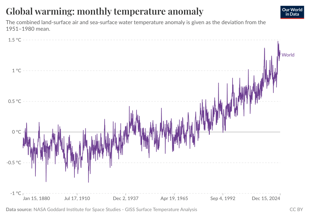 So much carbon dioxide has been released that there is now 50% more in the atmosphere than there was when we started burning industrial quantities of fossil fuels. The level is at its highest in 3,000,000 years.